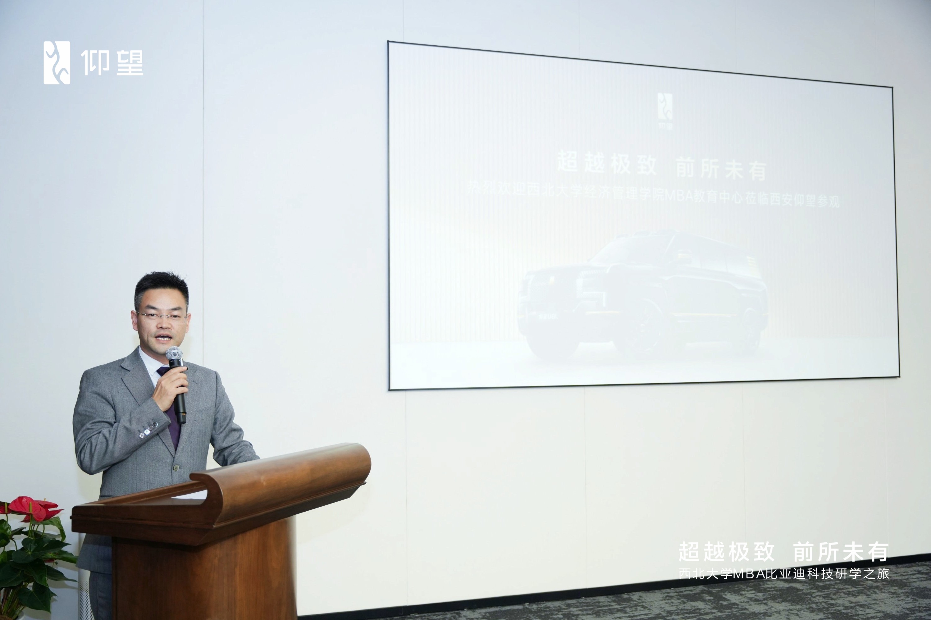比亚迪集团仰望汽车西北大区品牌总监兼大客户经理刘伟详细阐述了仰望品牌“勇于探索”的核心价值与在高端新能源领域的市场战略,并表达了与高校携手培养未来商业人才的积极意愿。
