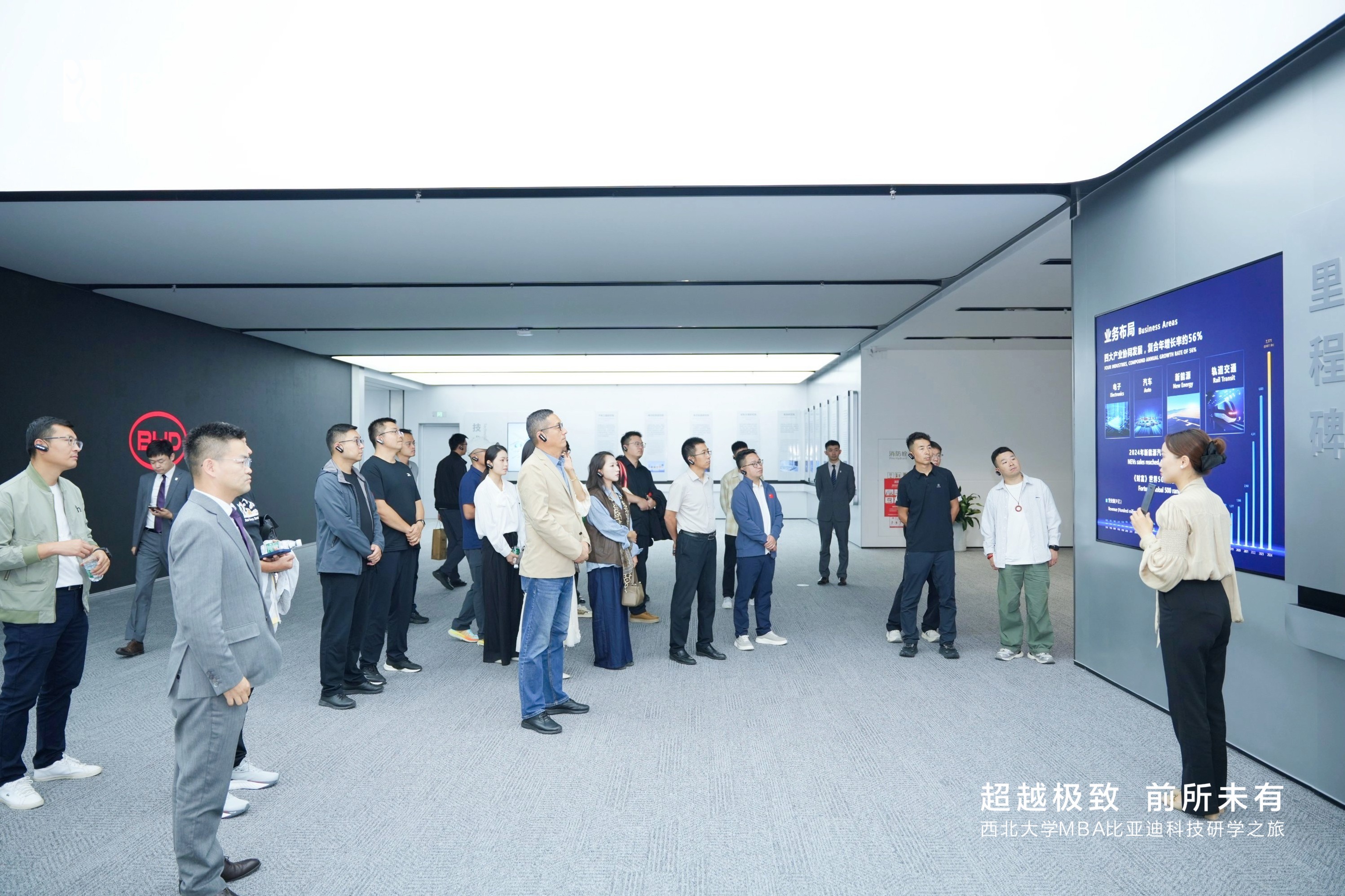 2025年9月25日下午,西北大学经济管理学院MBA师生代表在MBA/EDP中心主任郭亚军的带领下赴西安高新区亚迪研发大楼,开展了一场深度研学交流活动。