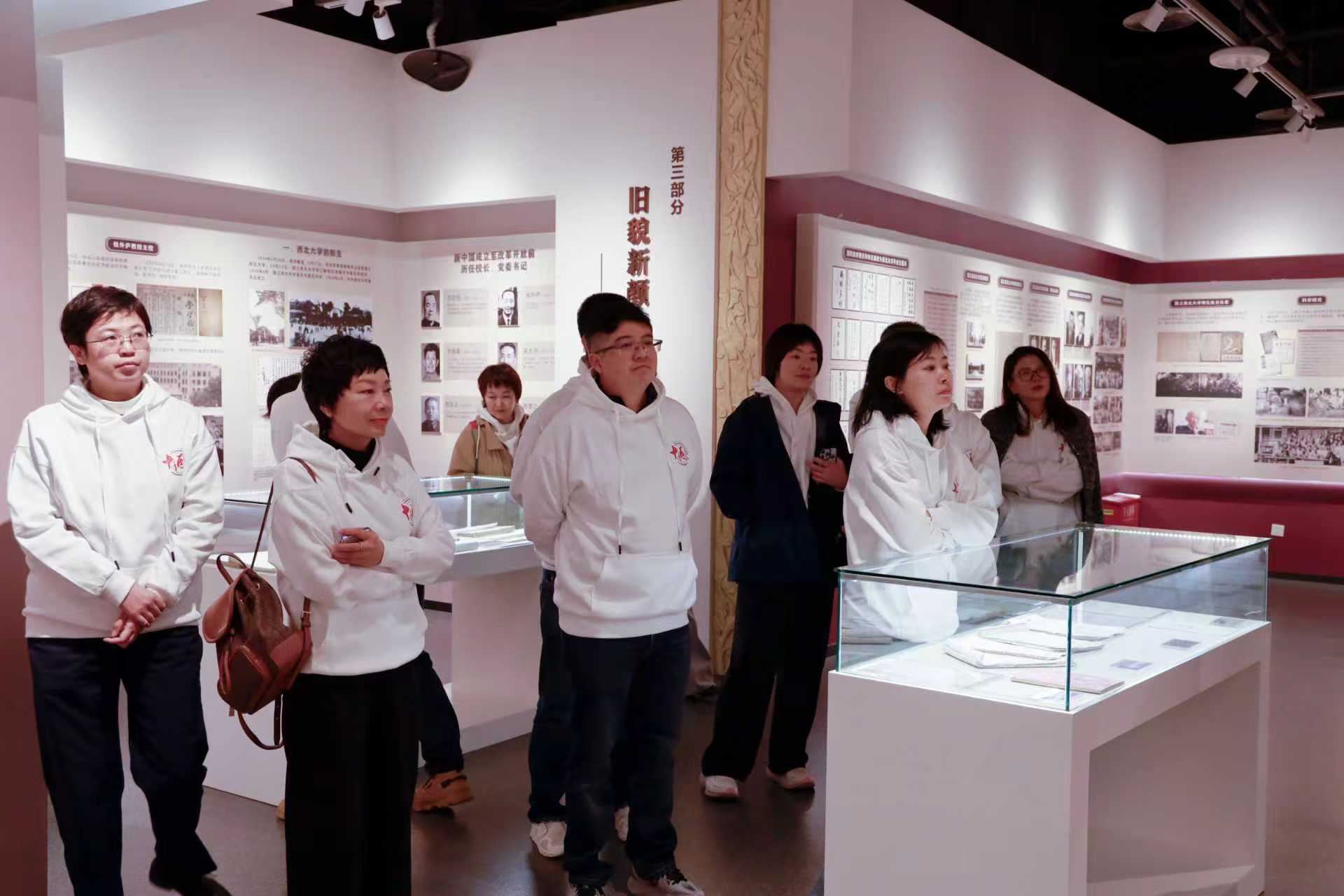 最后,大家来到学校博物馆,在讲解员的引导下,漫步于跨越时空的文明长廊,感受母校深厚的文化积淀。通过丰富的文物陈列与档案史料,大家沉浸式体验了学校“从历史走向未来”的精神传承。