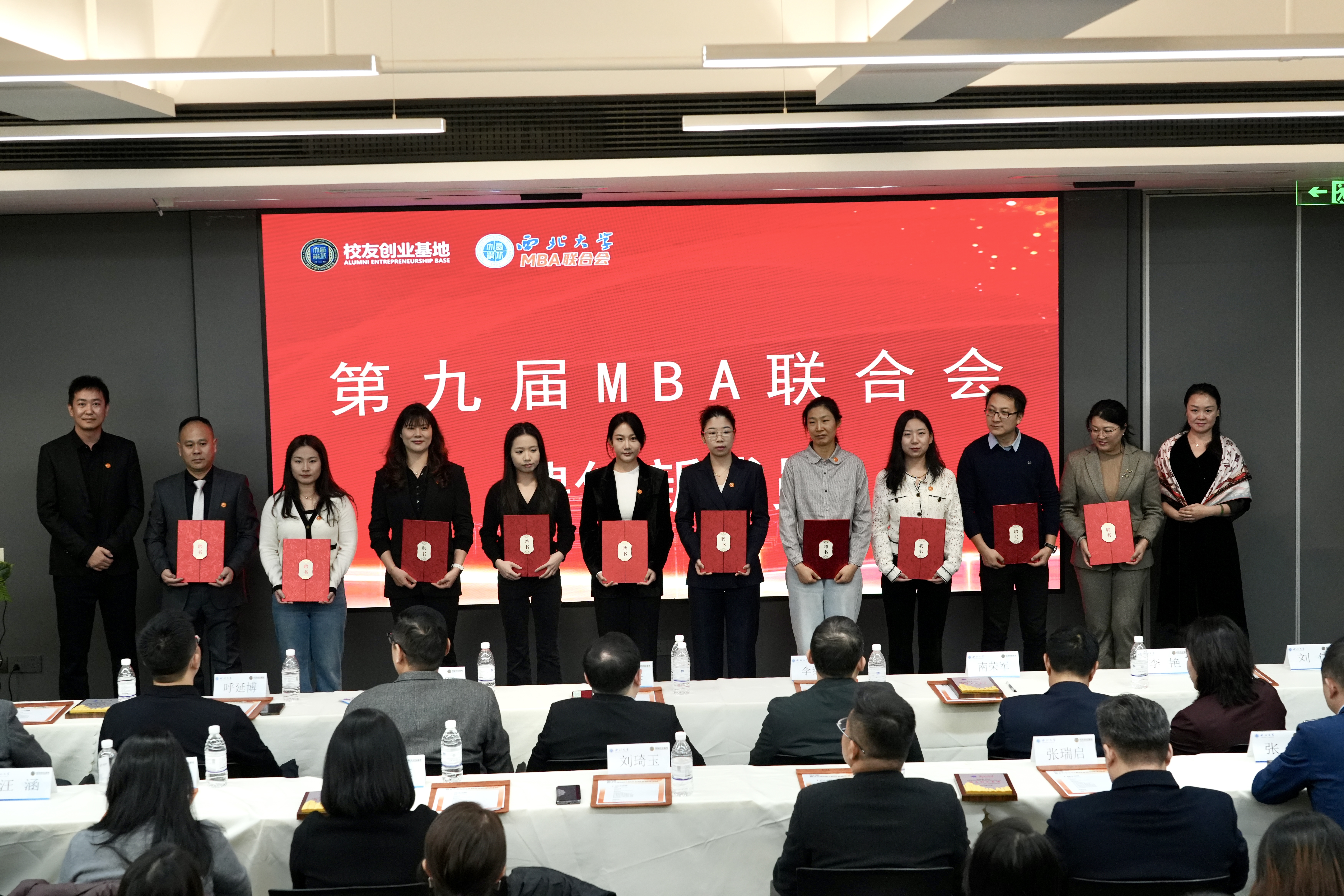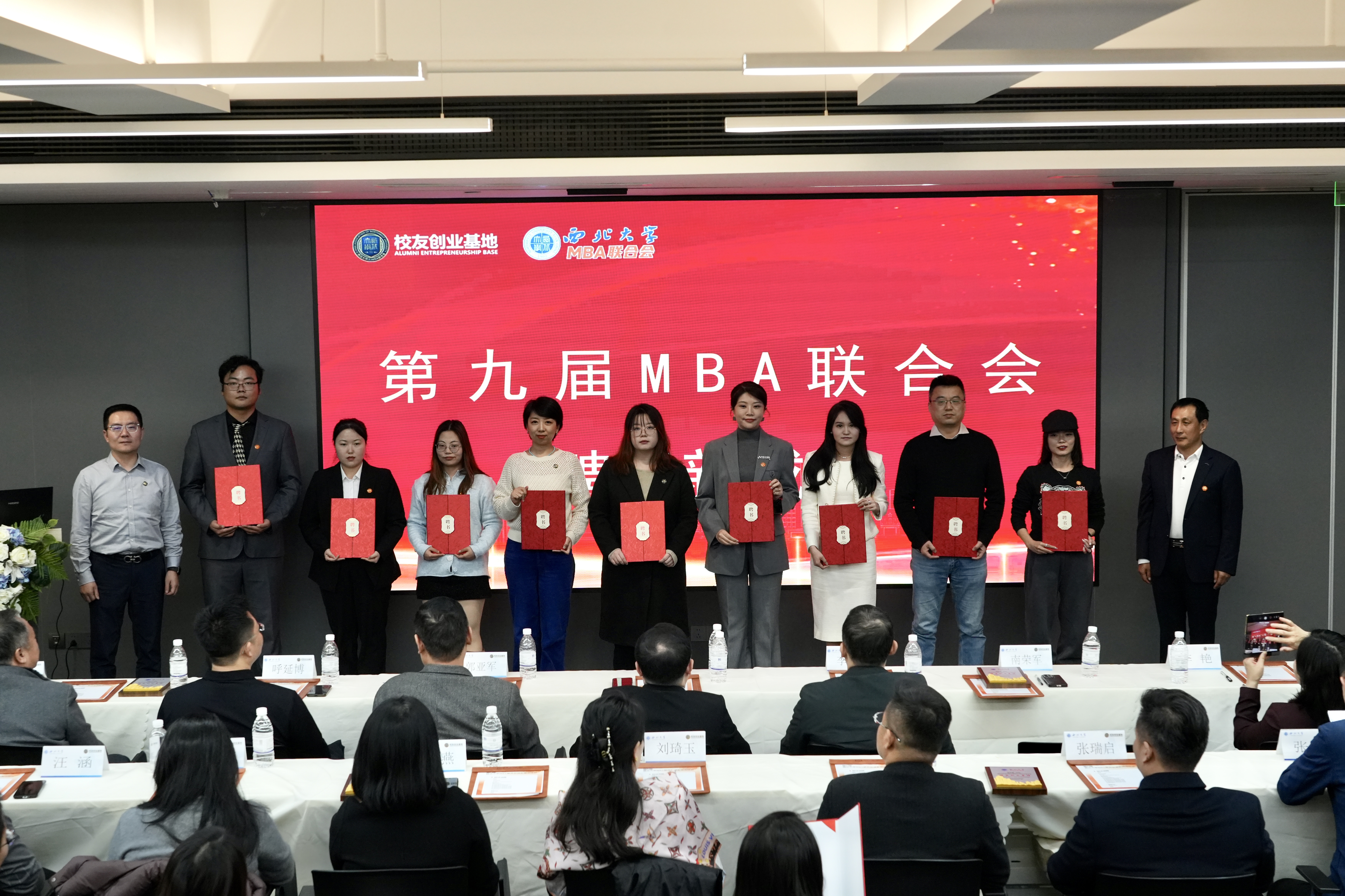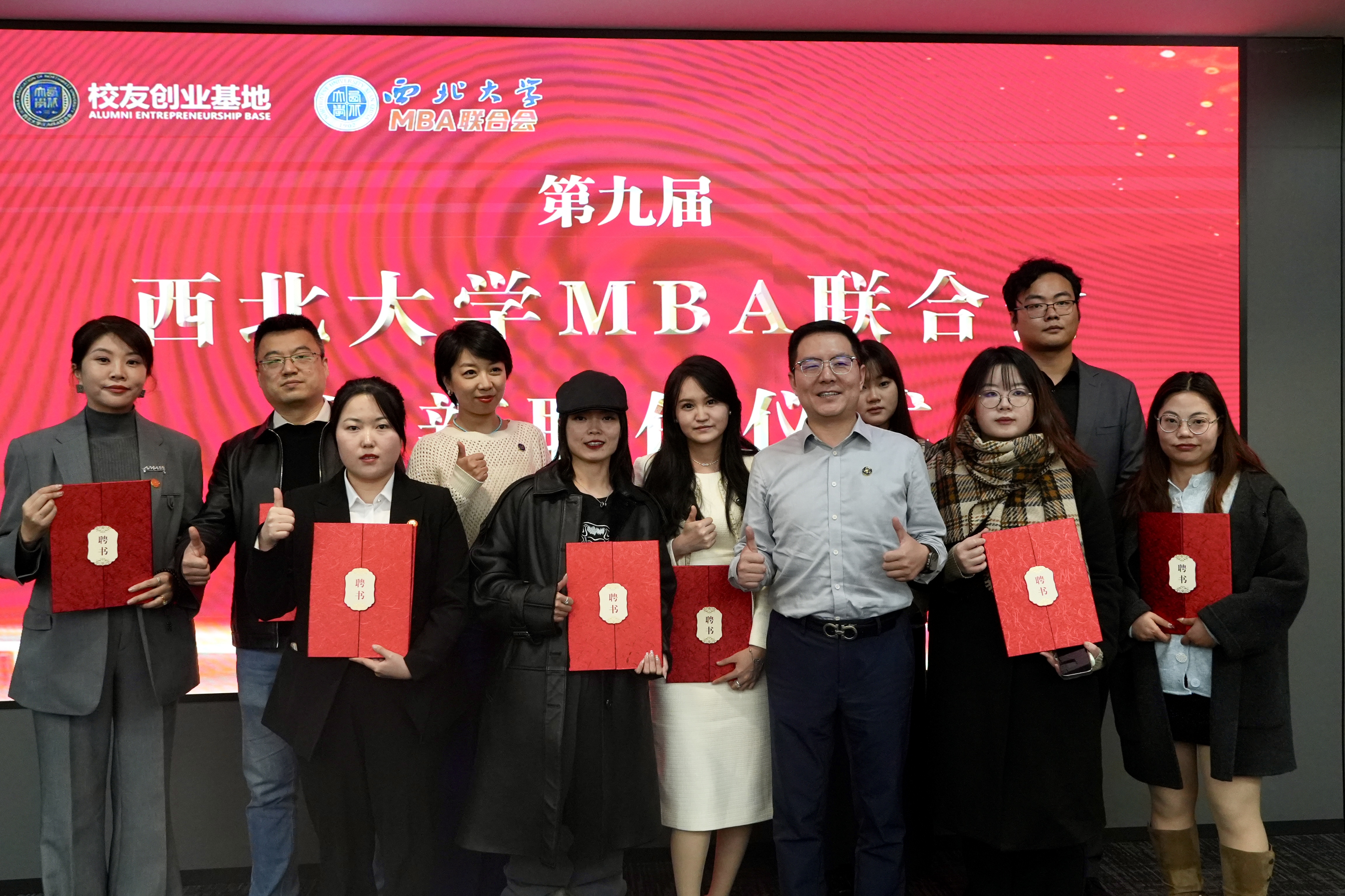 11月22日晚,西北大学经济管理学院第九届MBA联合会纳新聘任仪式在MBA校友创新创业基地举行。学校国内合作与校友工作处副处长燕来,MBA/EDP中心主任郭亚军,联合会顾委会荣誉主任呼延博、顾委会主任董云,MBA校友创业导师代表,第八届MBA联合会成员代表等参加活动。