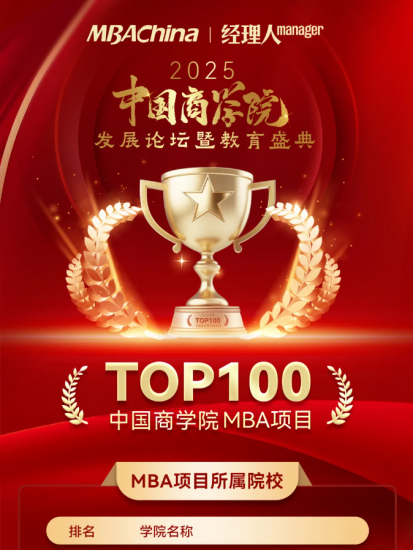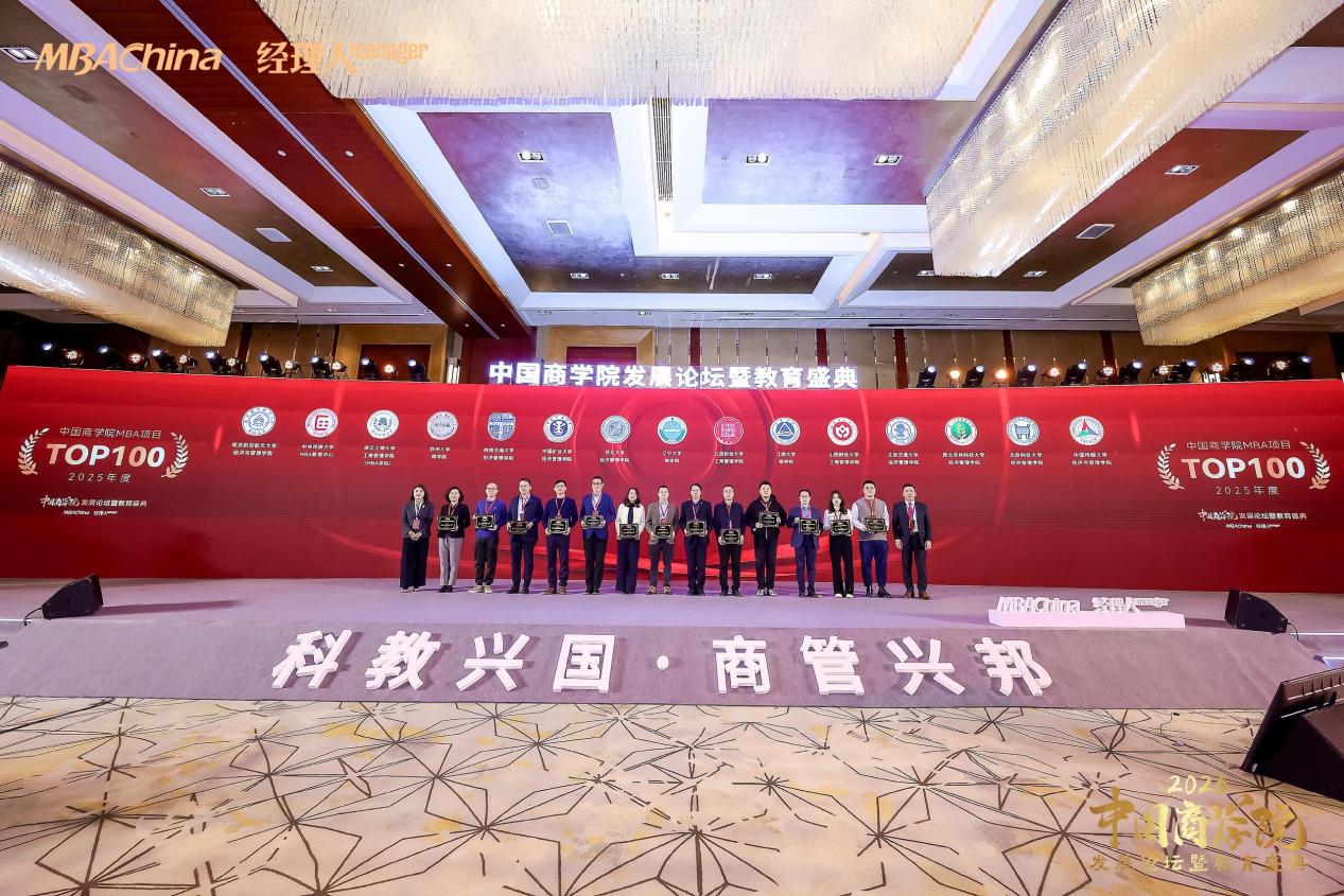 盛典重磅发布了“2025年度中国商学院MBA项目TOP100”,我院以卓越的综合实力荣耀上榜,荣获“2025年度中国商学院MBA项目TOP100”第43名殊荣!同时,我院获得“中国商学院社会责任公益品牌奖”;MBA联合会荣获“中国商学院MBA联合会金辉领航奖”。TOP100榜单不仅是一份凝聚信任与荣耀的榜单,更是一份见证时代商科力量的成绩单。