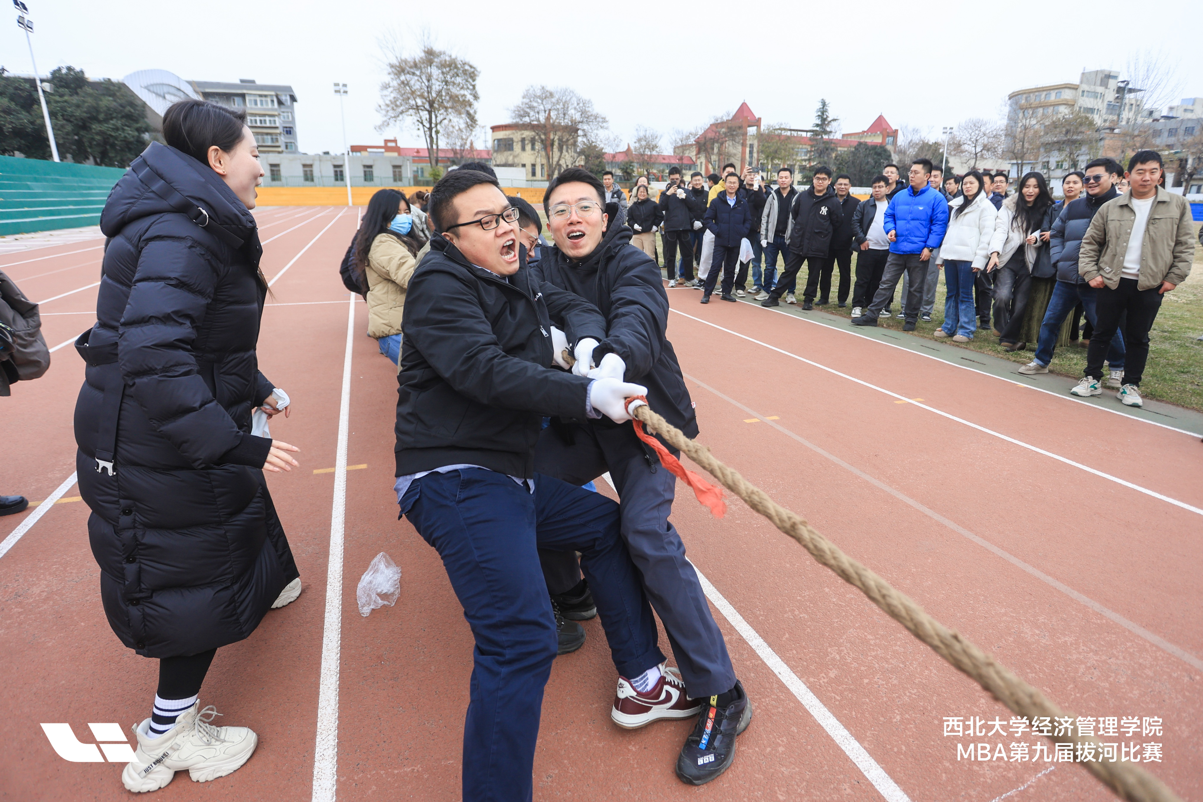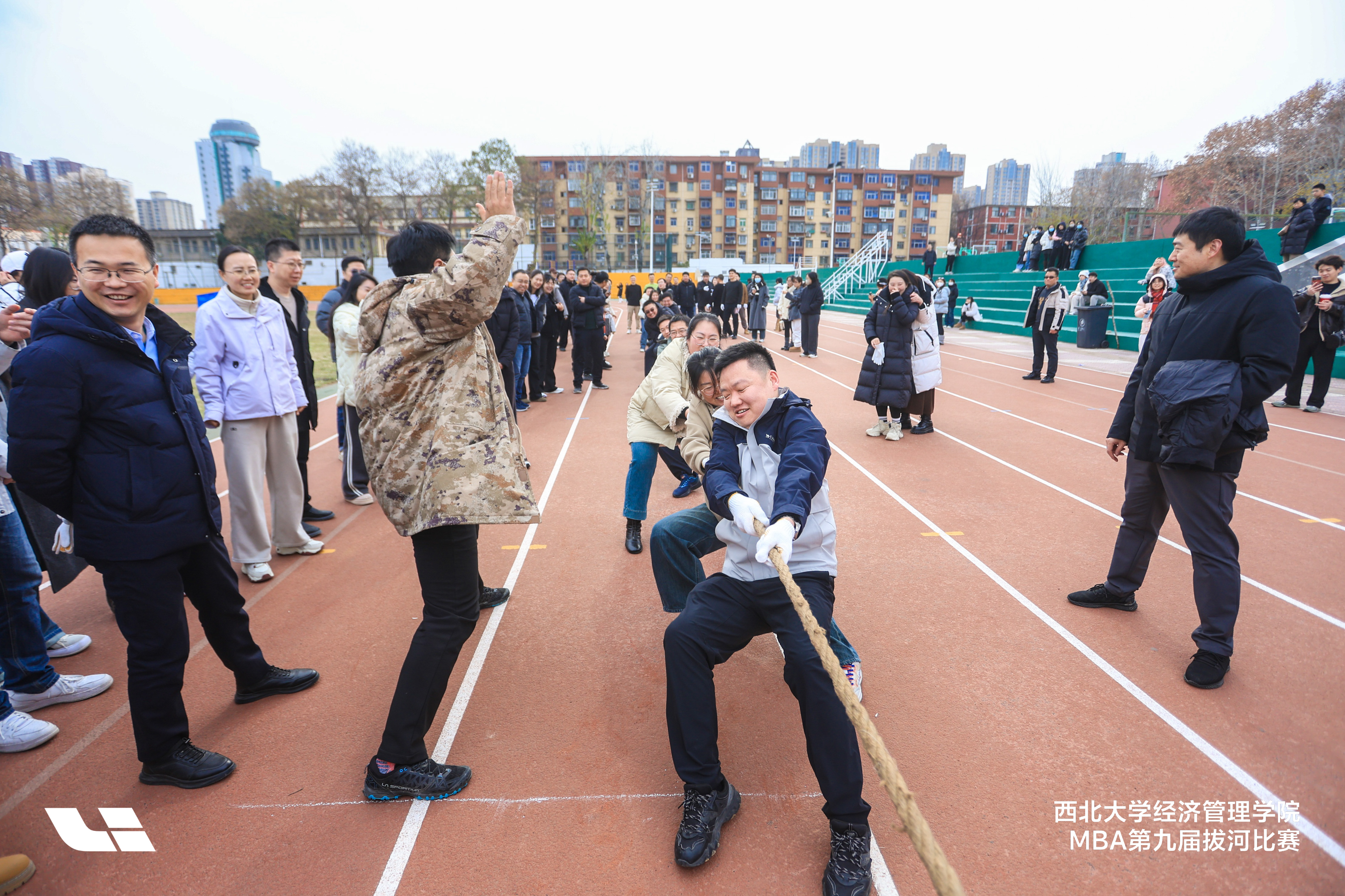 2025年12月20日中午,西北大学经济管理学院MBA第九届拔河比赛在太白校区操场顺利举行,来自2025级10各班200余人参加了此次比赛。活动由学生服务部乔伯明主持。